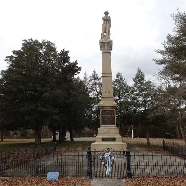 The Daughters of the American Revolution erected a 50-foot-high monument to mark the site of the Battle of Chestnut Neck and honor the men that fought there. The Minute Man at its top faces the river, "guarding the shore" against the approaching enemy. The monument was dedicated on October 6, 1911.